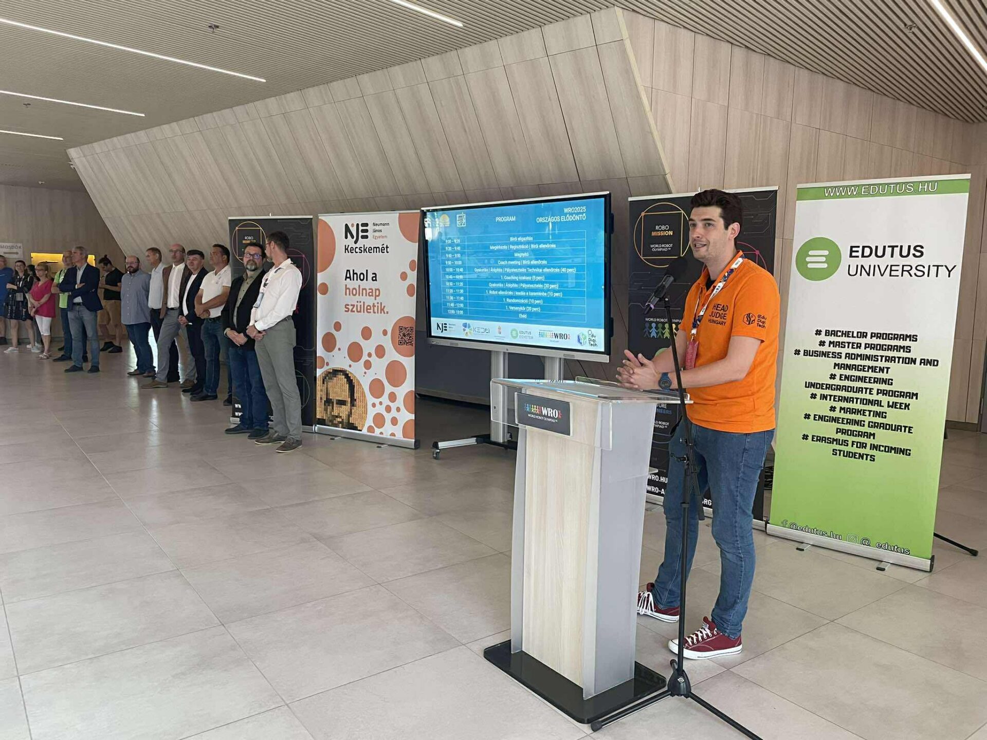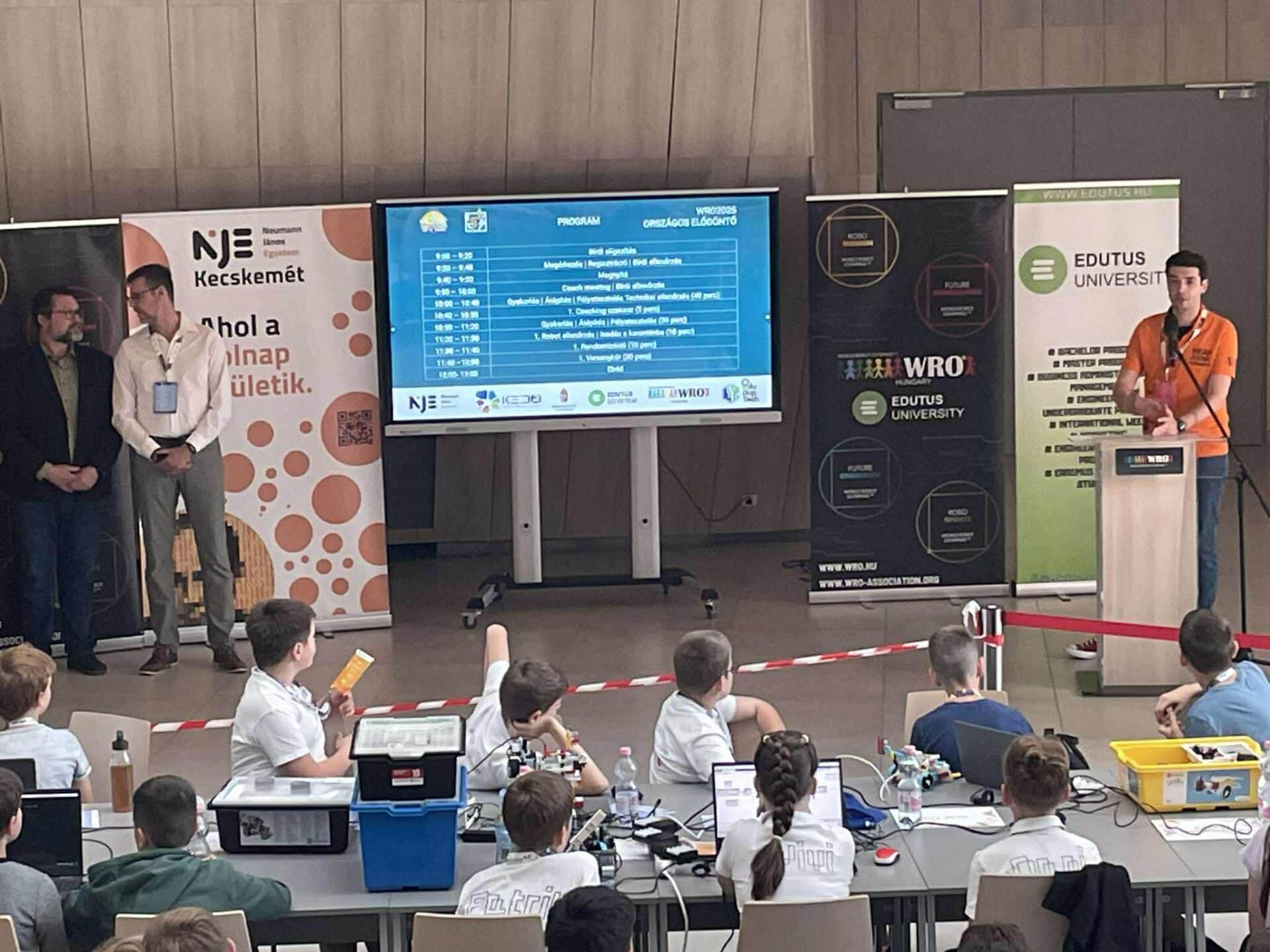 A verseny megnyitóján Dr. habil. Fülöp Tamás, a Neumann János Egyetem rektora, illetve Szilasi Péter Tamás, az Edutus Egyetem digitális oktatástudományi, fejlesztési és nemzetközi igazgatója köszöntötte a versenyzőket. Az WRO Országos Elődöntőjében 48 csapat mérte össze tudását RoboMission kategóriában, hogy bebizonyítsa a Nemzeti Döntőben a helye! A mindent eldöntő utolsó kvalifikációs versenynek a Neumann János Egyetem adott otthont.