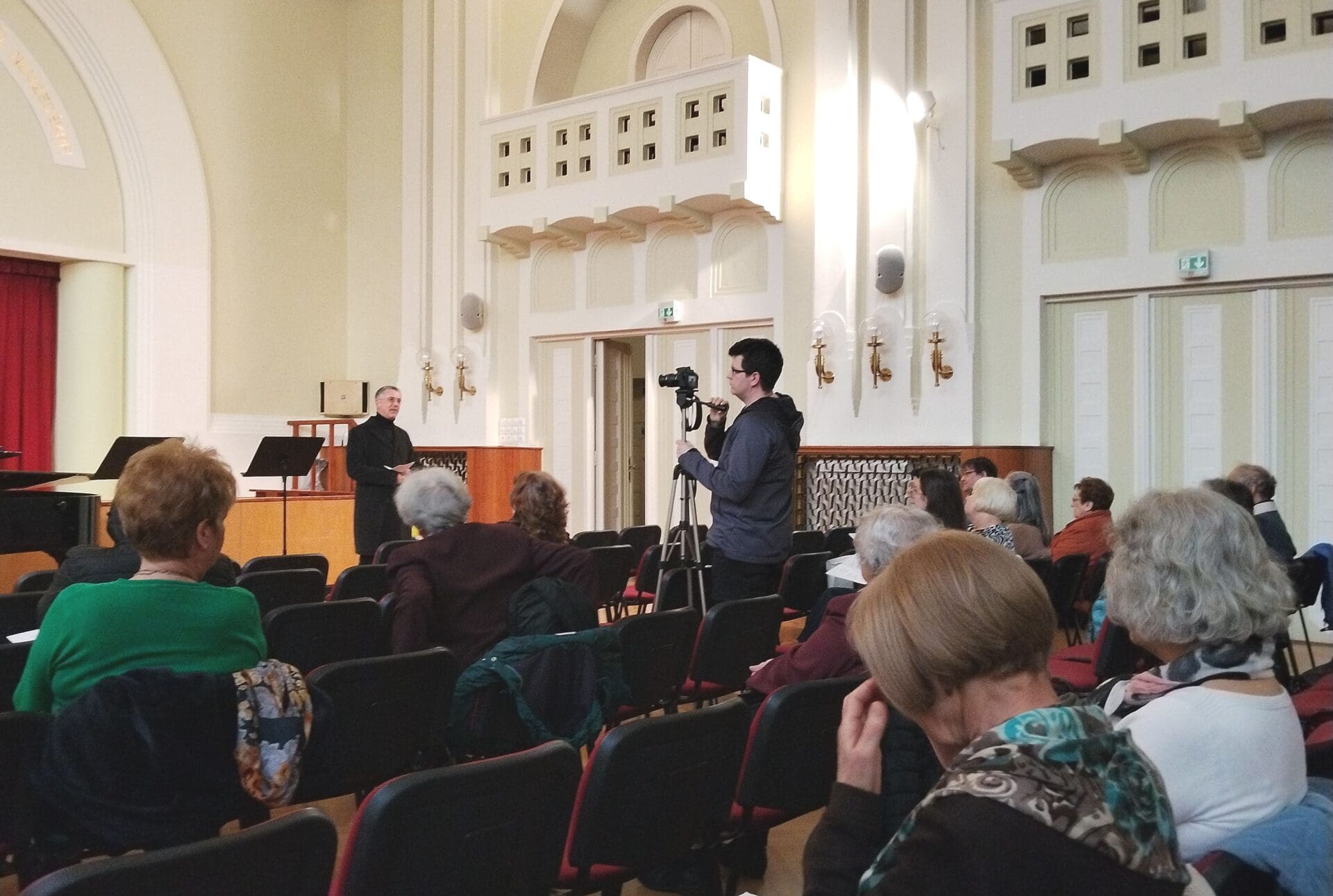 A zenés áhítat elején a házigazda református közösség nevében Varga Nándor parókus lelkész üdvözölte a megjelenteket. Megkülönböztetett szeretettel mondott köszönetet az előadóknak – kiemelten Sipos Rita Veronikának, a kecskeméti református kollégium öregdiákjának, aki mint mondta: „énekes szolgálataival már korábban is nagyon sokszor megörvendeztette hallgatóit” –, hogy segítségükkel „bekapcsolódhatunk abba a passiótörténetbe, ami most fordul rá Krisztus szenvedésére”. Beszélt arról is, hogy „az elhangzó mű szövegében Mária áll a középpontban, és mi, reformátusok a Mária-kultuszból kimaradva, de Mária tiszteletében megmaradva példaként tartjuk magunk előtt azt az elhivatott szeretetet, ahogyan ő Krisztust fogadta a születésekor, és ahogyan osztozik, ahogyan tanít minket osztozni a szomorúságon és a fájdalomban”.