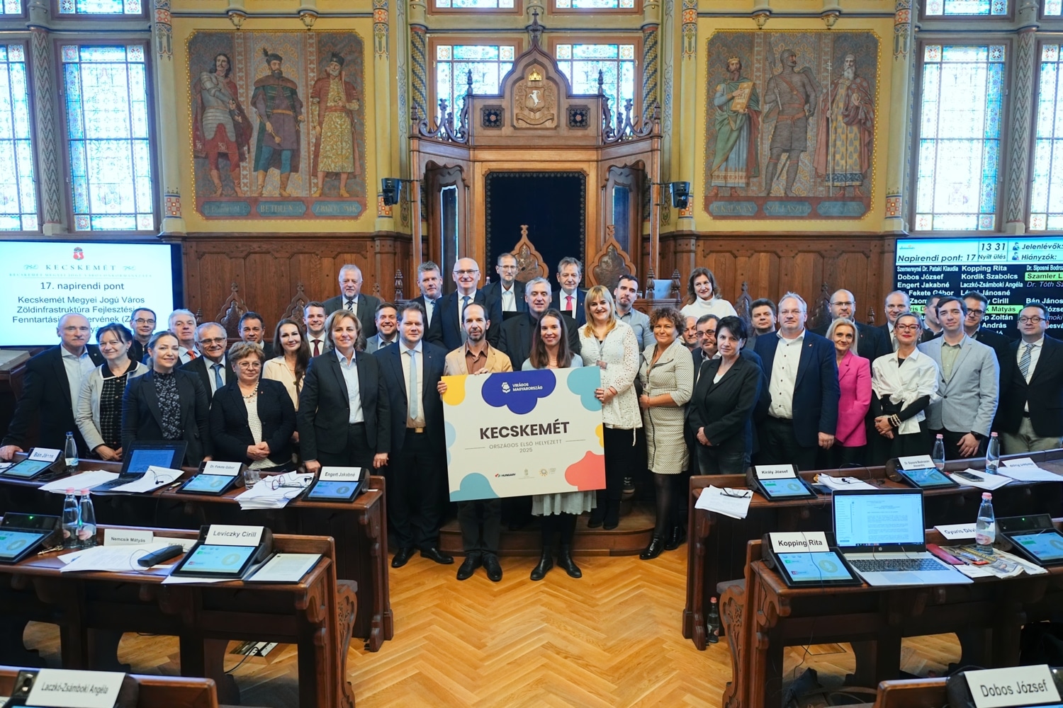 Dr. Fekete Gábor alpolgármester javaslatára közös fotózással indult a város Zöldinfrastruktúra Fejlesztési és Fenntartási Akcióterve, azaz a ZIFFA napirendjének tárgyalása a mai közgyűlésen. A témához ugyanis szorosan kapcsolódik, hogy Kecskemét a napokban elnyerte a Virágos Magyarország verseny fődíját, a „Legvirágosabb város” címet. Az elismerés komoly csapatmunka eredménye, ez is azt bizonyítja, hogy a hírös város eddig is sokat tett a zöldítés érdekében, a folytatásra pedig épp ez az akcióterv a garancia.