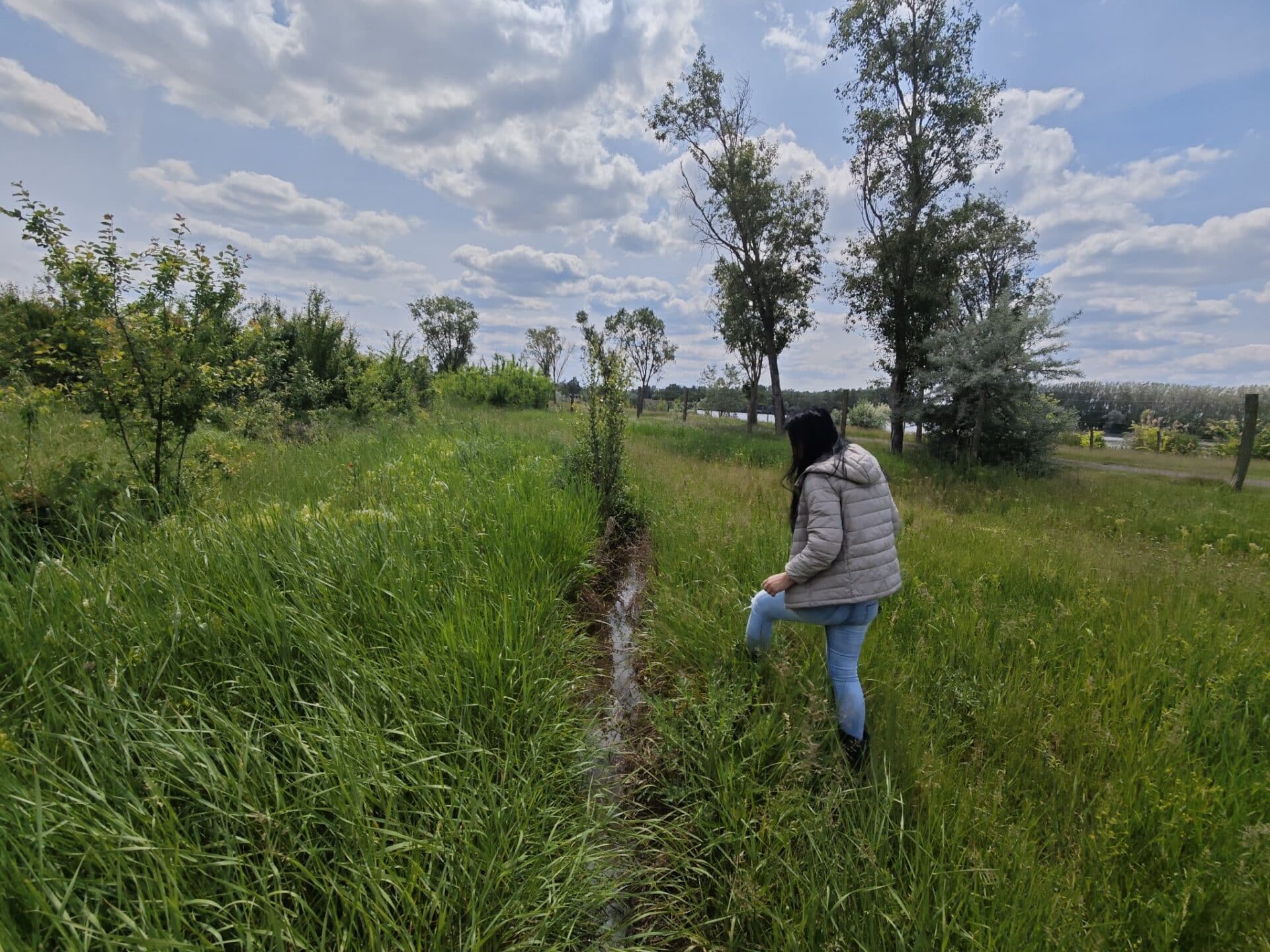 A mini erdőtől sétálunk tovább a park belseje felé, ahová egy buja vadvirágos rétet varázsolt az egyesület. A Kiskunságban ritkán látni ennyi virágot egyszerre nyílni, gyorsan kiszáradnak a homokon. Itt azonban csatornák és több szintes kis patak táplálja a földet, két kisebb tavat összekötve. Ezeket is az önkéntesek alakították ki.